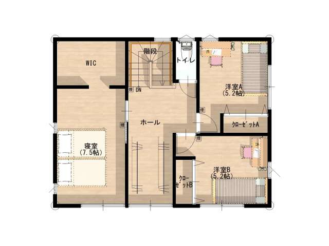 | 詳細間取 | 4LDK (2階:洋7.5帖×1、1階:洋6帖×1、2階:5.2帖×2、1階:LDK18帖) | ||